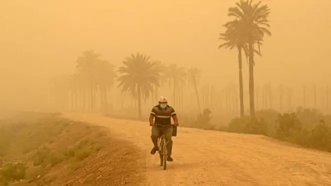 وذكر، أن “الأربعاء القادم سيكون الطقس صحواً على العموم، والرياح شمالية غربية معتدلة السرعة (20-30) كم/س تنشط في الأقسام الشرقية من المنطقتين الوسطى والجنوبية إلى (30-40) كم/س مُسببة تصاعد الغبار فيهما، ودرجات الحرارة ترتفع قليلاً عن اليوم السابق، مدى الرؤية (6-8) كم وفي الغبار (2-4) كم”.